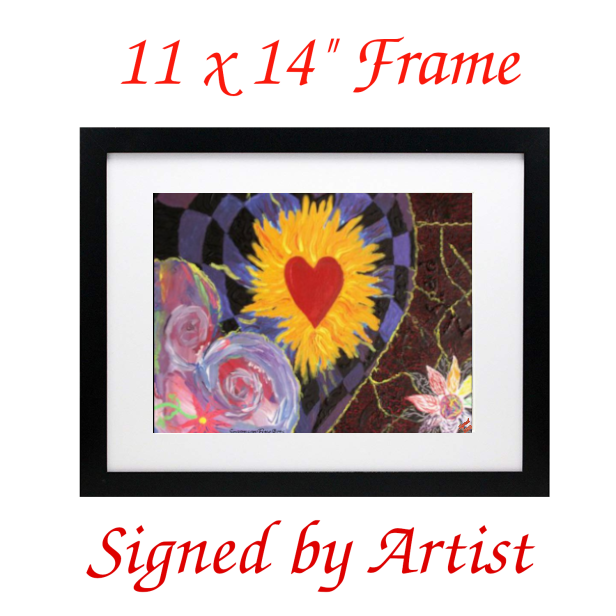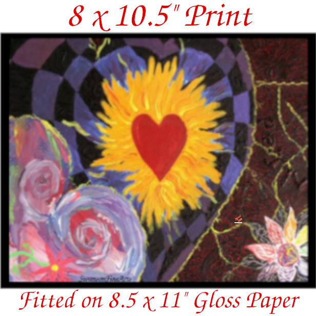 This print is shipped to you in a standard manila envelope and is easy to frame for your home or office. Paper is 8.5x11" gloss professional photo paper, and art is printed on 8x10.5" to fit most frames.Enjoy our beautiful Outer Heart design in your home or office, without paying shipping on a frame. Price includes all shipping and taxes.