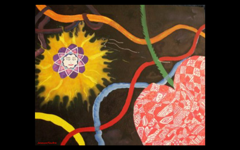 This set includes an 11oz coffee cup AND 1L stainless steel water bottle featuring our "Outer Heart" painting. It includes elements of outer space, passion, love, and creativity. Painted in 2007, this is the first public release of the painting. Price includes all shipping and taxes.