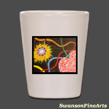 This 1oz shot glass is professionally printed with our "Outer Heart" painting that features both airbrush and acrylic painting techniques. Price includes shipping and taxes. Thank you for supporting small business!