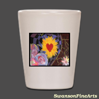 Inner Heart shot glass holds approximately one ounce of liquid and features a professional print of this painting. No additional costs for shipping or taxes, we cover all the fees for you. Enjoy!