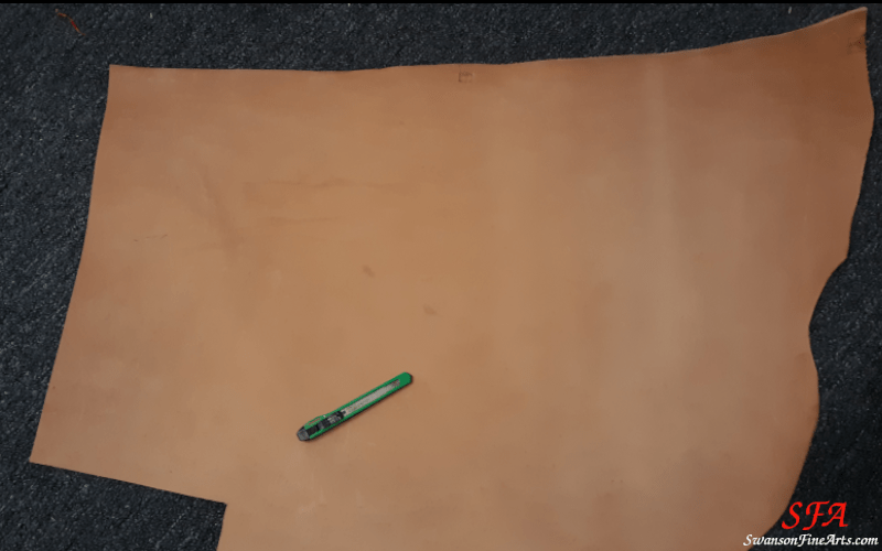 Today was the first day sporting my new handmade leather holster. I started with a flat piece of 6/7oz Single Shoulder Craftsman Veg-Tan leather and cut it using a craft blade and ruler.