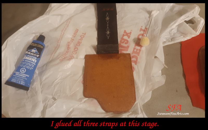 In order to be sure that this would hold, I glued the straps with leather cement and also sewed through them to give them extra strength.
