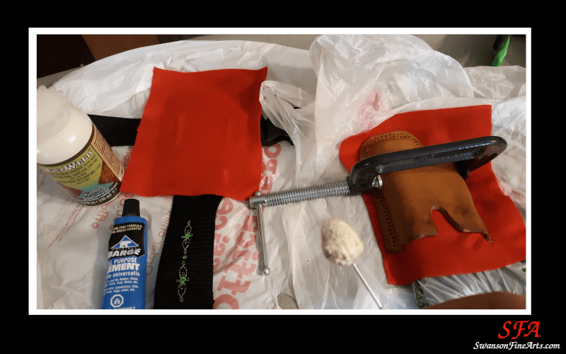 The inner lining was glued using EcoWeld water soluble fabric glue and finished with a few dabs of superglue on key areas like the trigger-guard, knots tied in the thread to hold it together, and a few cosmetic spots that just looked better glued a little bit tighter.