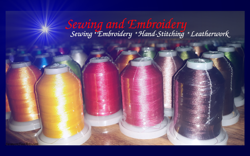 The SwansonFineArts studios are proud to present our new sewing and embroidery department. It is currently in the initial startup phase, but soon we will be able to sew and embroider with ease. Learn how to sew or order sewing accents…we hope that you enjoy our new sewing, embroidery, and leatherwork section.