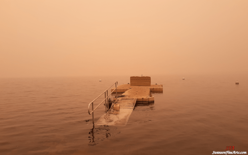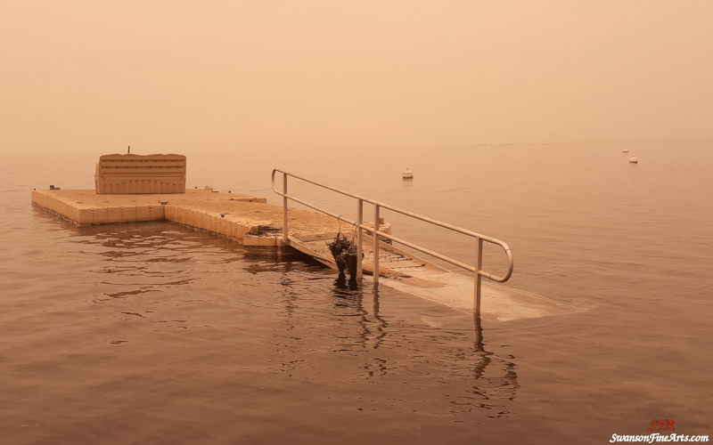 The dock posed a risk for catching embers because it is such a flat surface. There was also the risk that water level would drop significantly before we could return, putting the dock at risk for catching fire or becoming damaged in other ways. Before we got there, my Dad did the labor to move it out into the water and submerge portions of the dock to protect the wheels and other vulnerable parts in addition to putting it as deep as he could reasonably get it.