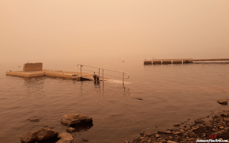 These photos were some of the last I took before getting into the car and leaving. Ash was starting to rain down and the smoke was much thicker than just a few minutes earlier. We were aware that the fire had reached the other side of the lake, and needed to get out before the fire spread.